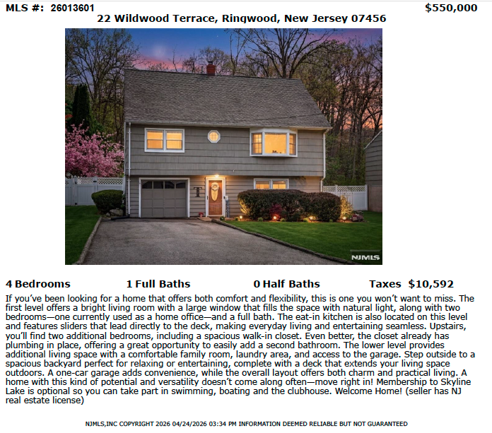 22 Wildwood Terrace, Ringwood, New Jersey 07456