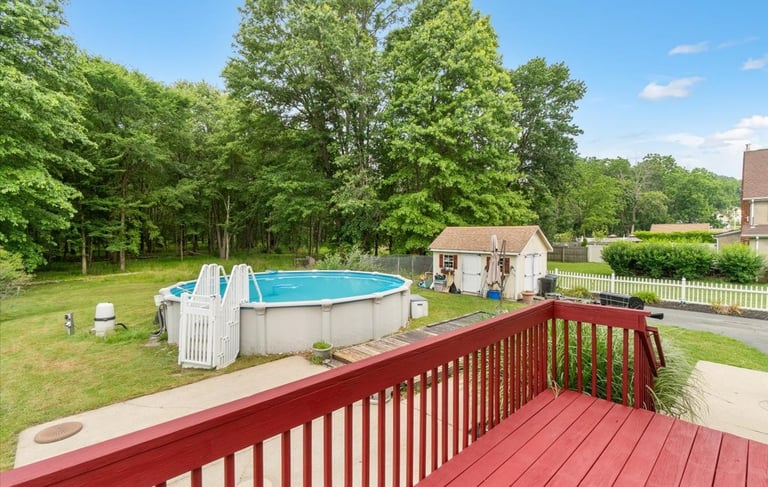 Cooling above ground pool, backed by a wooded area..what more can you ask for? Schedule a tour today! Click here (or the image) for more info!