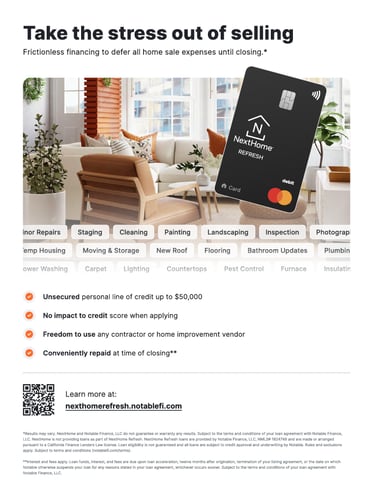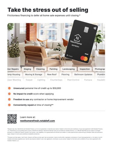 Exciting news! NextHome has partnered with Notable Finance to help you get up to $50K to get your home 'market-ready', with nothing due until closing.